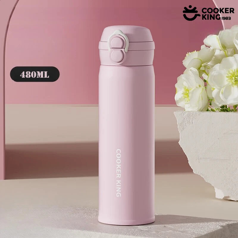 Triple protection keeps spills at bay: an anti-misoperation buckle, sealed silicone plug, and nozzle water-lock. This hot and cold water bottle goes in bags and backpacks without worry.